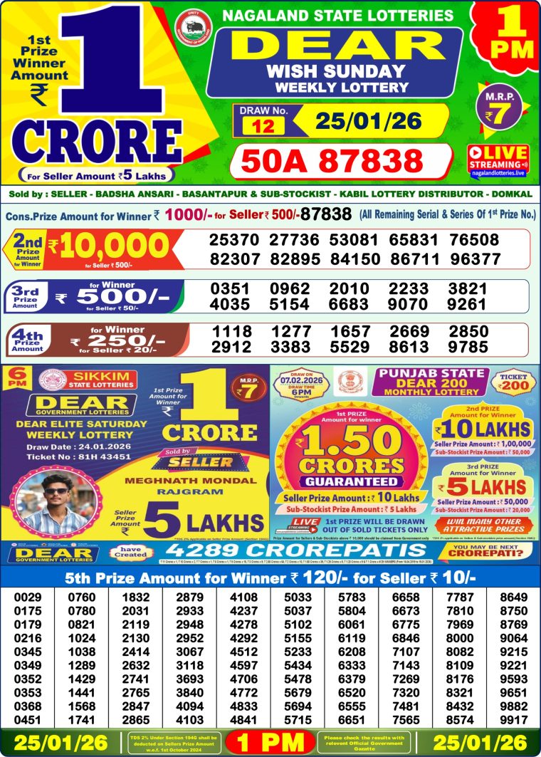 Dear Wish Weekly Lottery 25.01.26 Draw Result Published here.